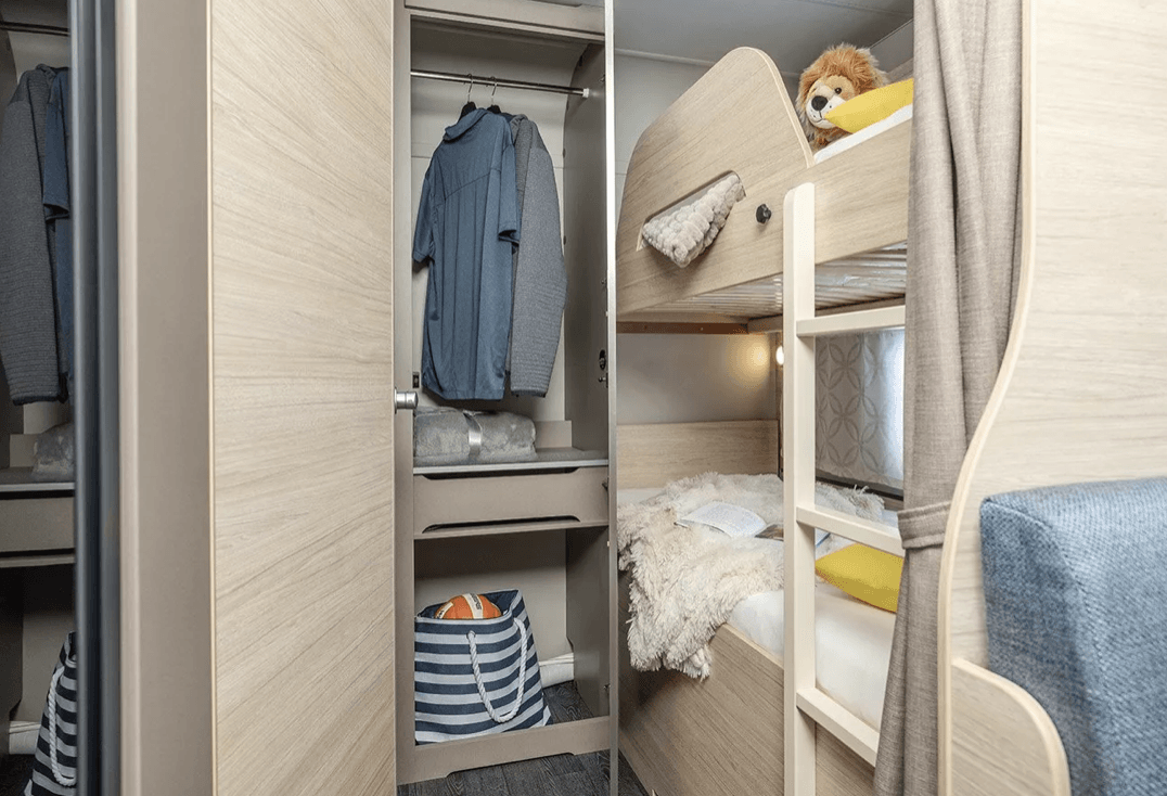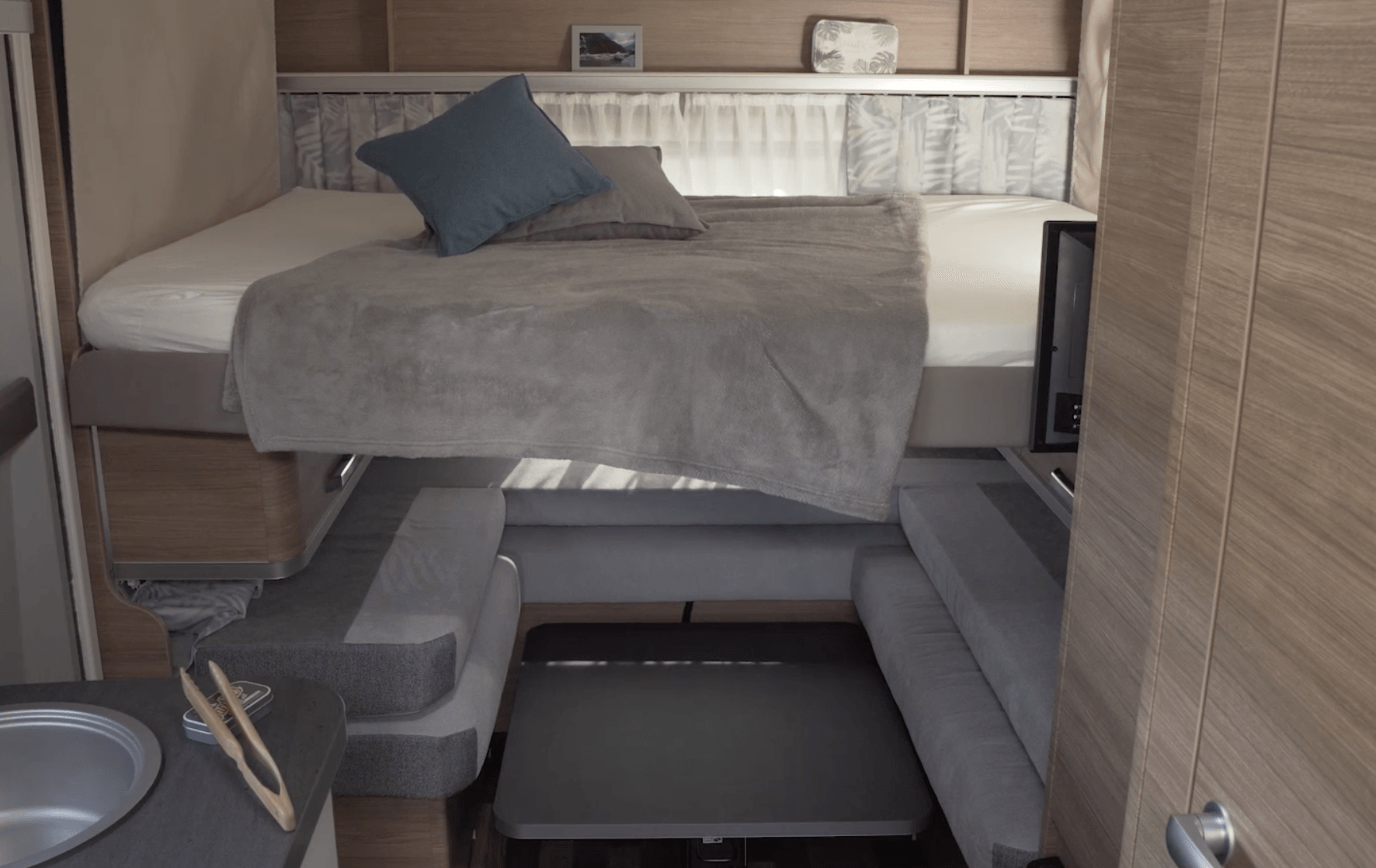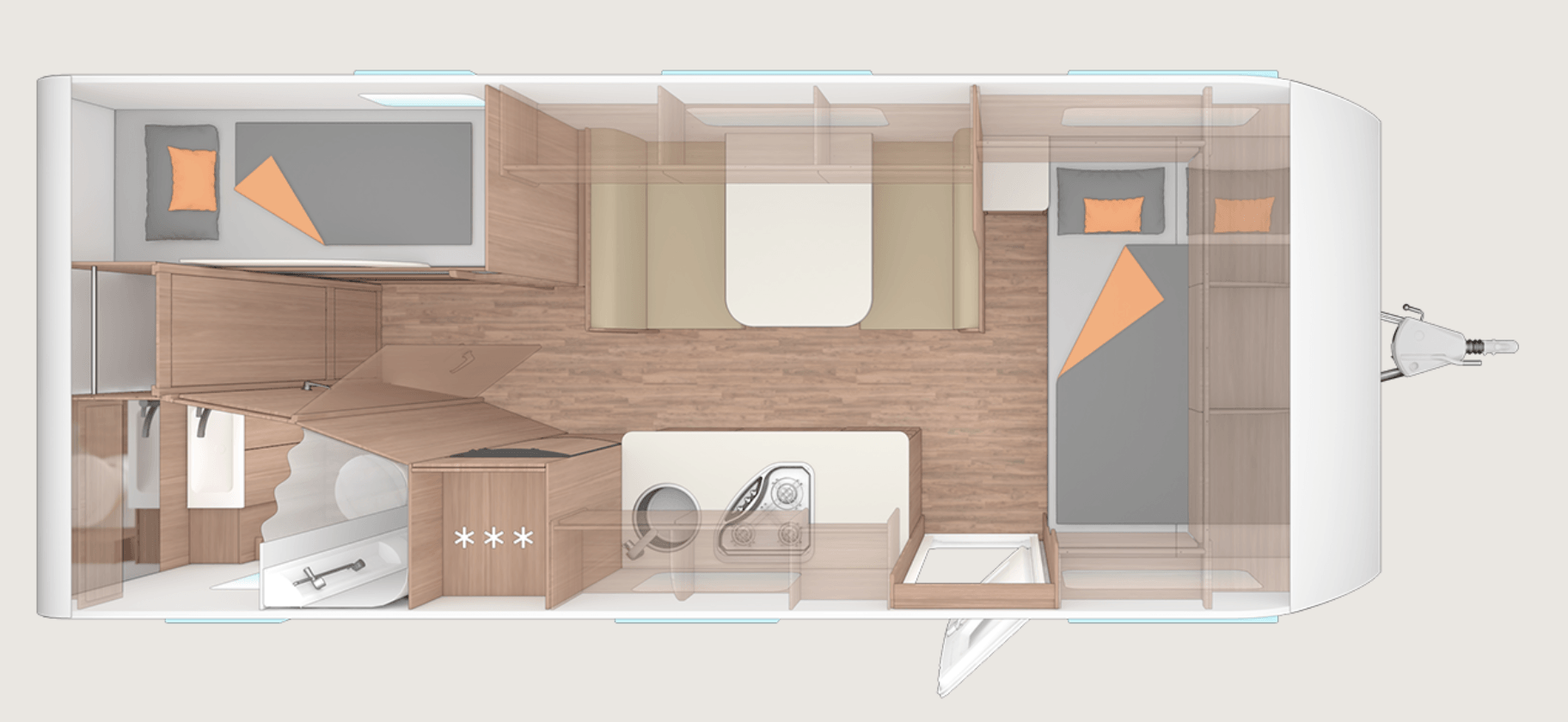 Deze caravan onderscheid zich door z'n praktische indeling met een hefbed. De indeling is super handig en de mooie kopkeuken geeft een zeer ruimtelijk gevoel.