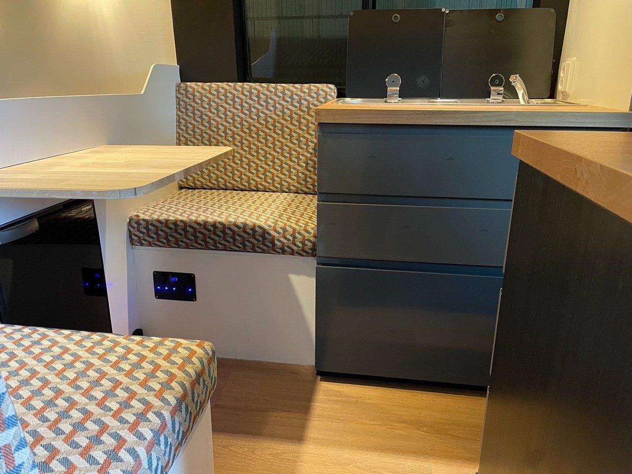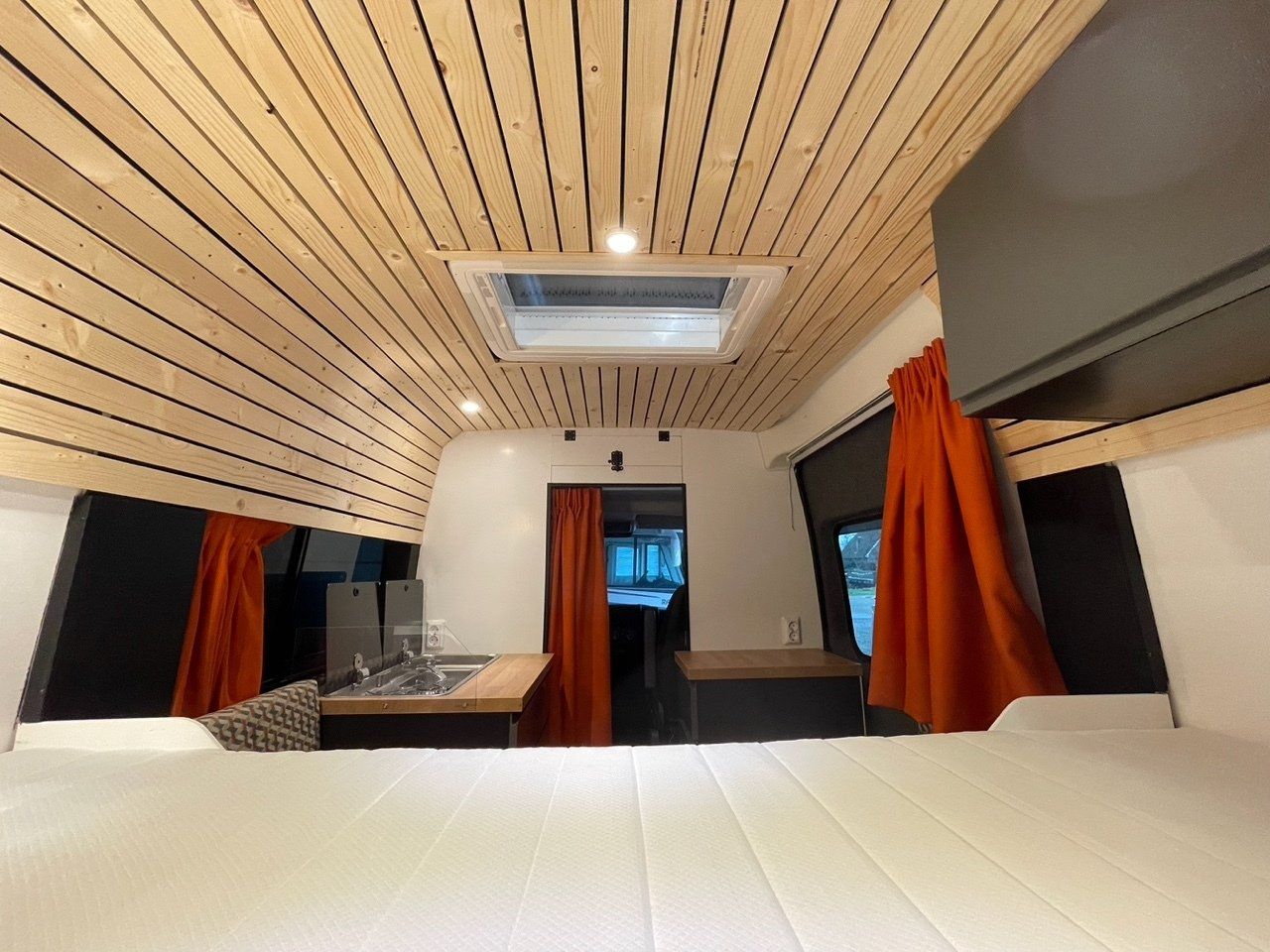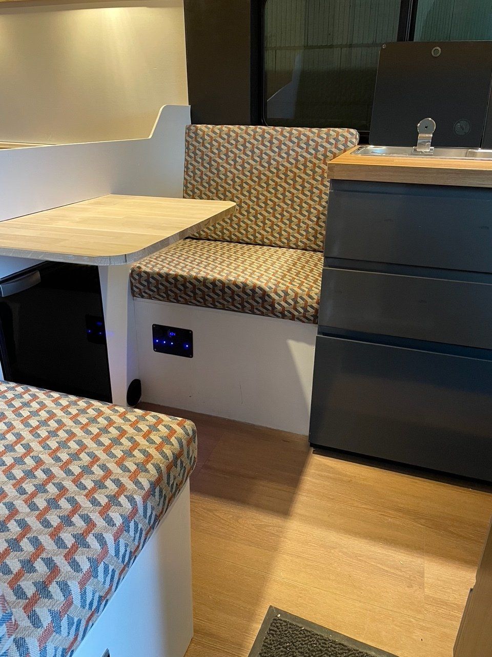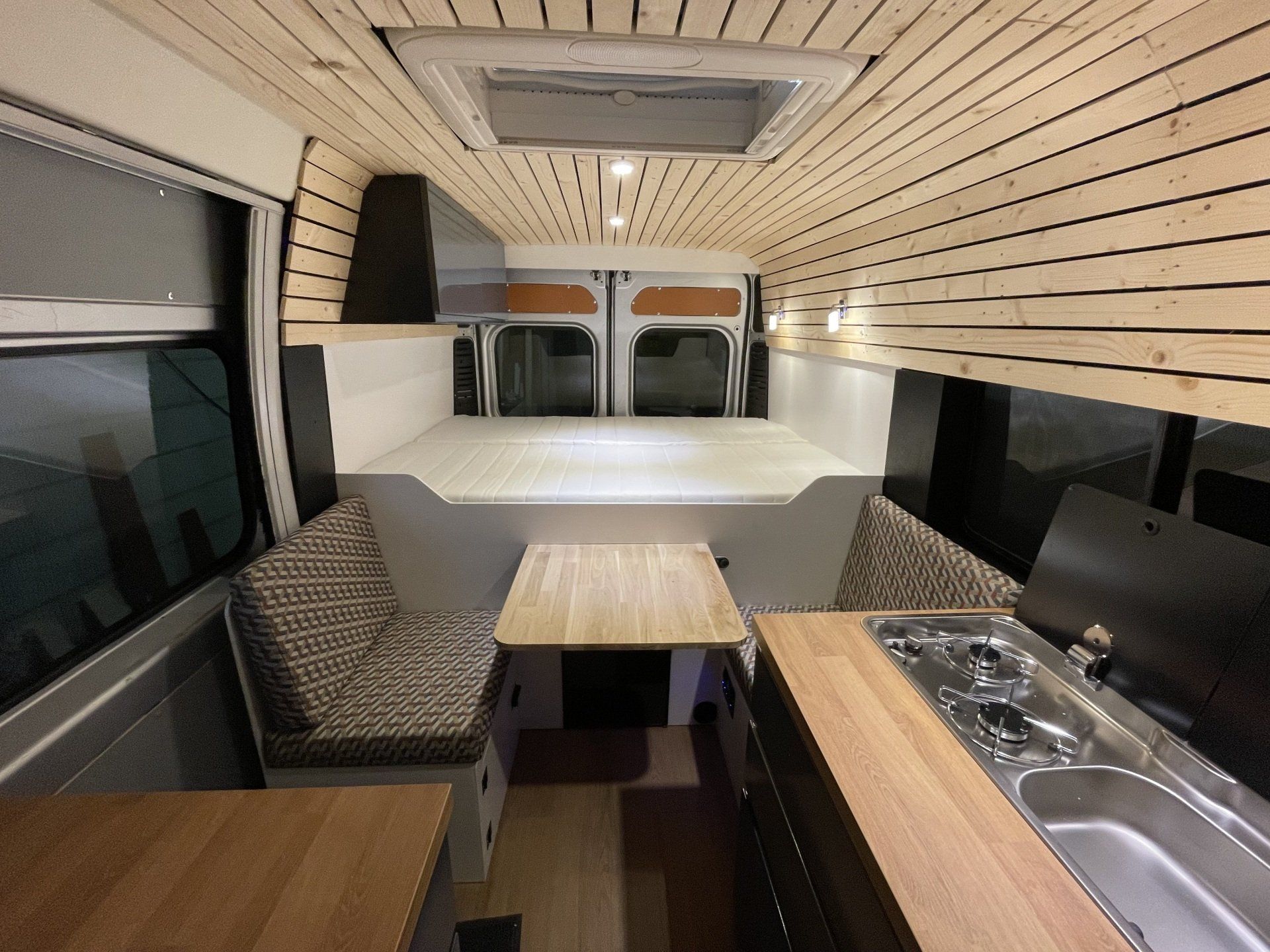 In opdracht van een klant uit Harderwijk hebben we deze Peugeot omgebouwd. Zij hebben zelf de bus uitgezocht. Samen hebben we de indeling bepaald. Het tussenschot is eruit gehaald en zo ontstaat een ruimtelijker gevoel. Een ruime koelkast zit onder het bed. De standkachel zorgt voor een aangename temperatuur binnen als het buiten wat kouder is. Het zonnepaneel houdt de accu van deze energiezuinige camper op peil.