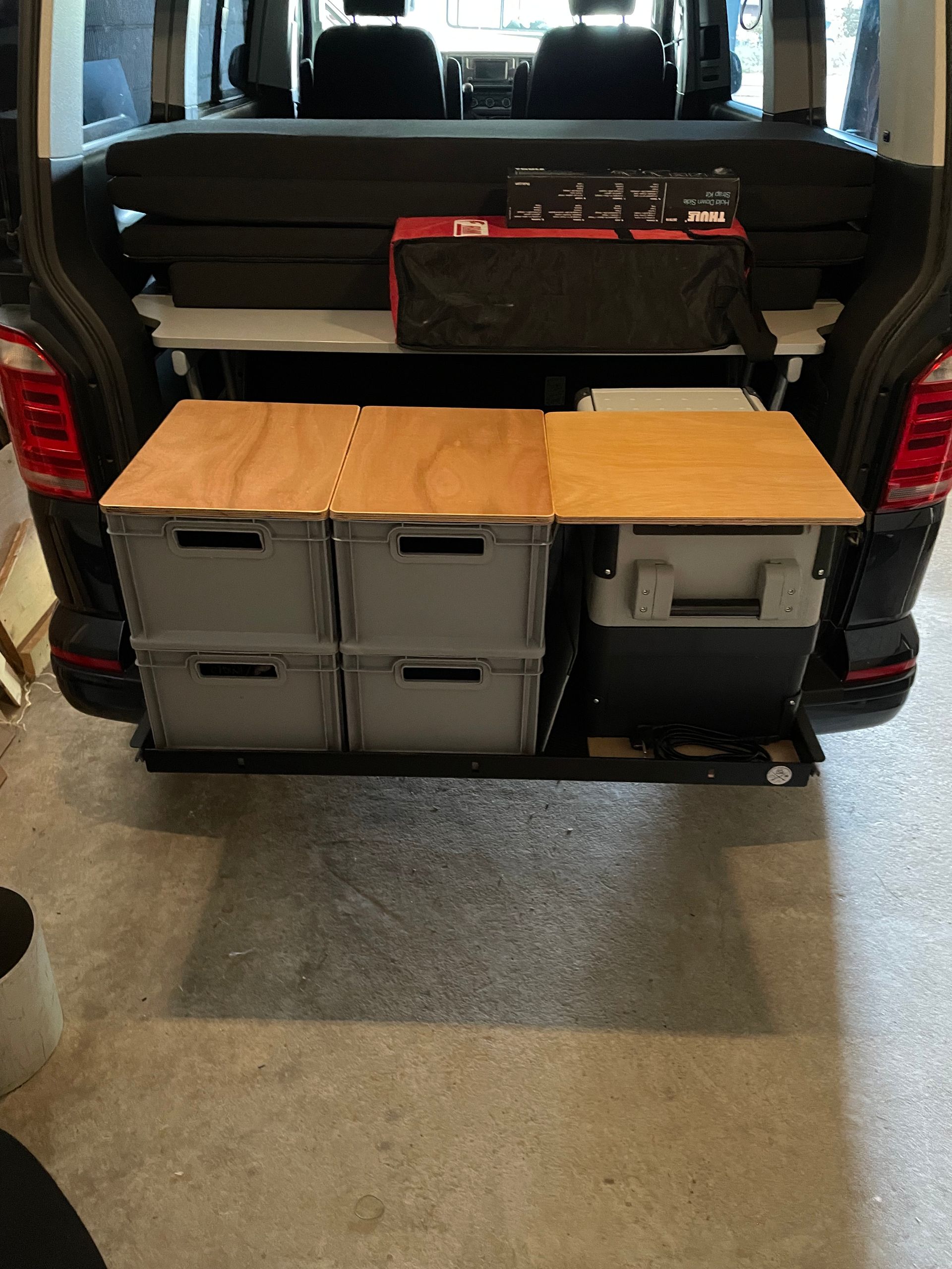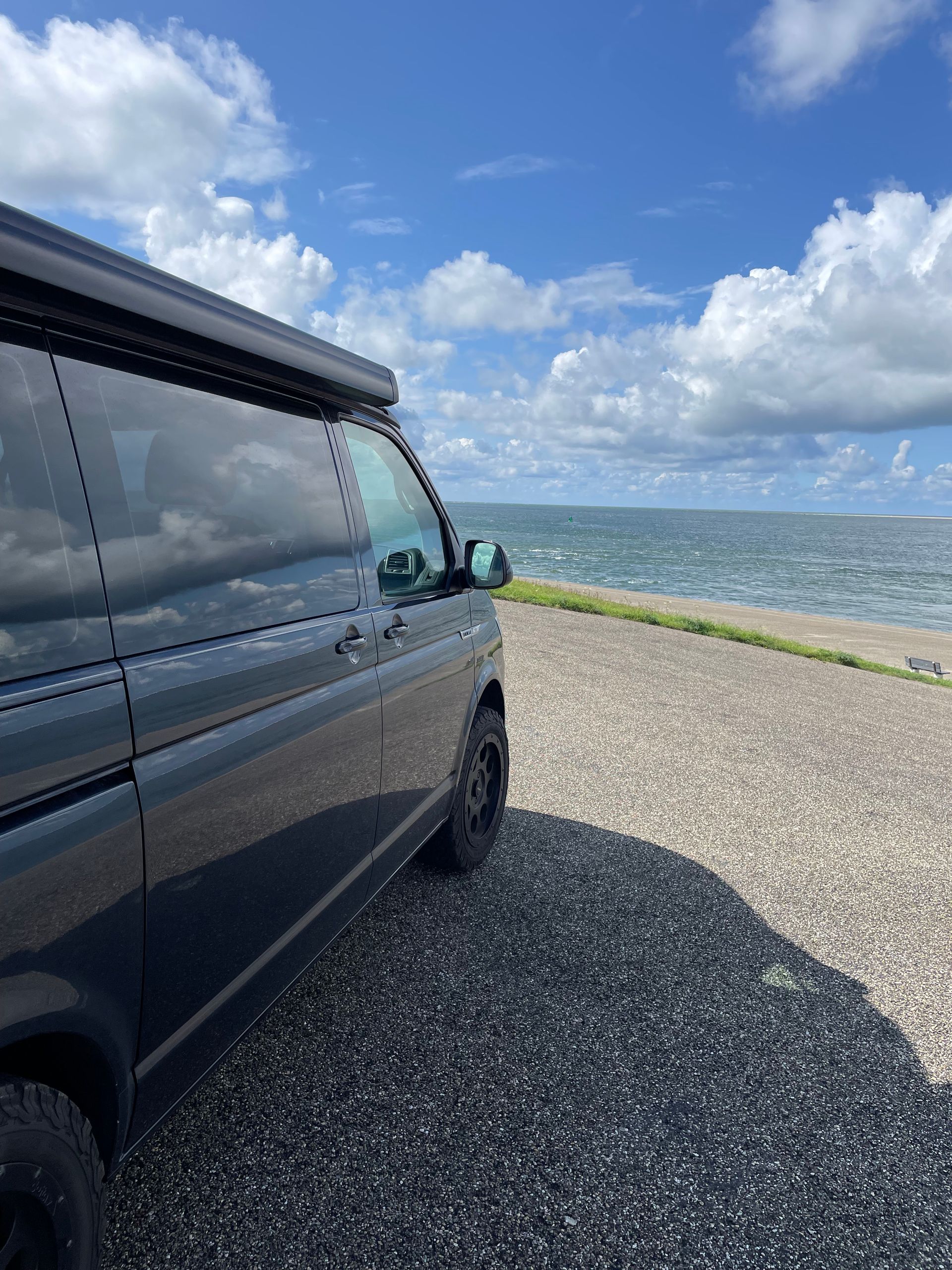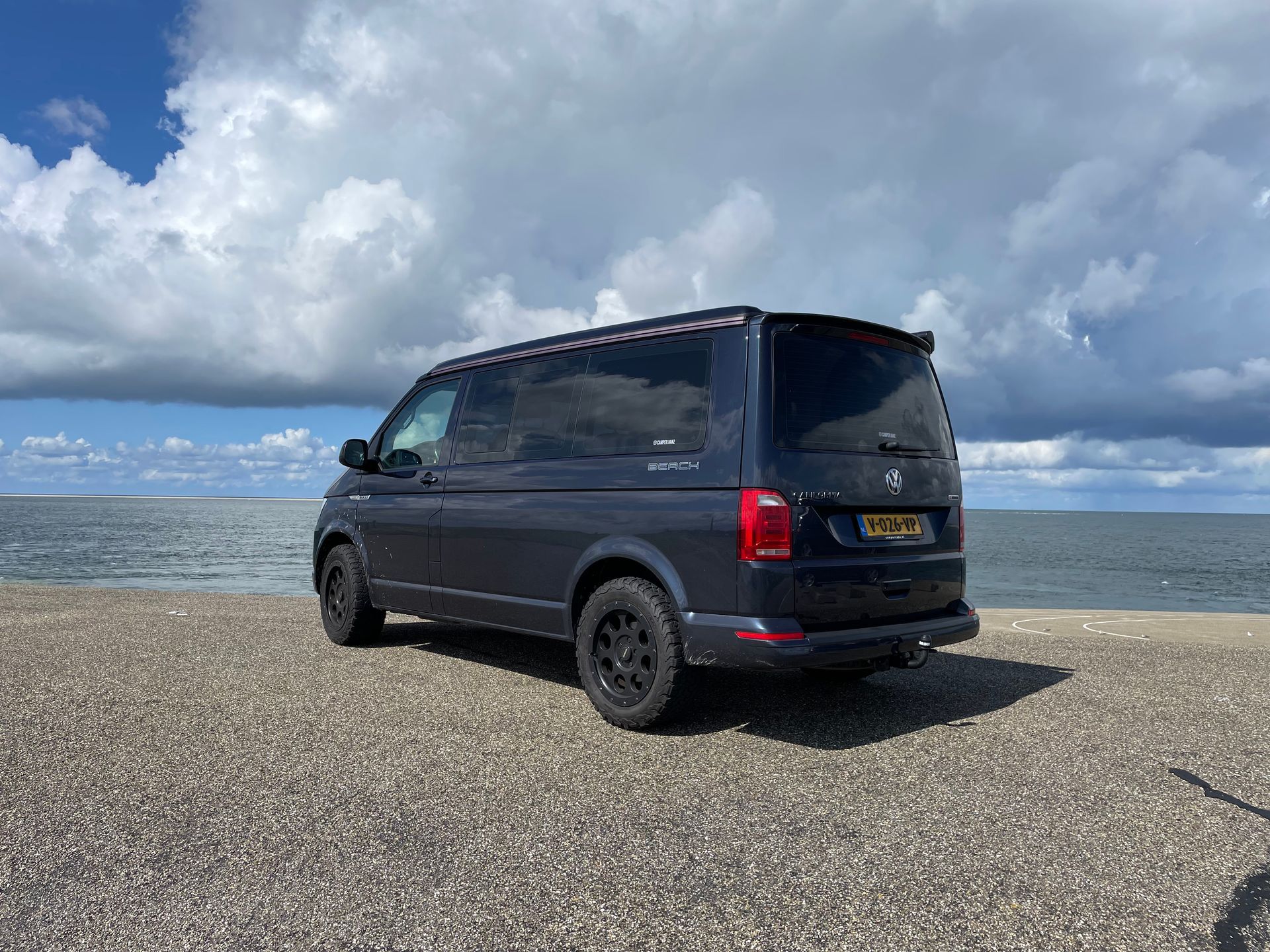 Met z'n 204 pk 4x4 automaat is dit onze jongste aanwinst. Een kant en klare originele California Beach met een door ons aangepaste keuken module. Een super comfortabele reisgenoot met enorm veel ruimte. Zowel het beneden bed als het boven bed zijn veel ruimer dan de "gewone" California waarbij de keuken langs de zijkant zit. Ook de opbergvakken van Felleisen zijn super handig. Een stoere bus die wat hoger op de pootjes staat maakt het gezicht compleet.