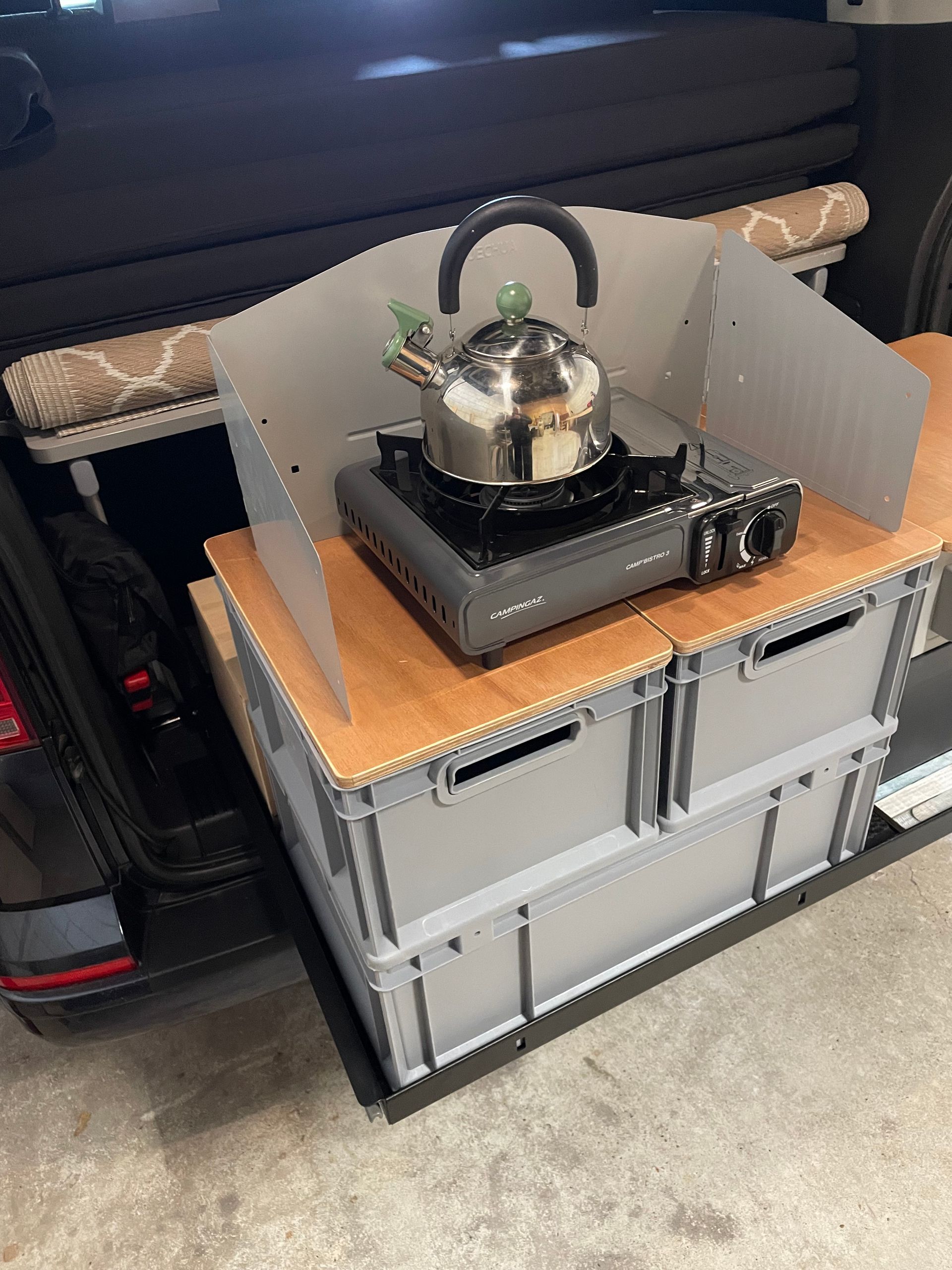 De Peugeot Boxer is voorzien van een eigentijdse kleurstelling. Natuurlijke kleuren van het hout afgewisseld met geel en zwart. Wij vinden m goed gelukt. Verder is de camper voorzien van een dwarsbed van 195x160 cm. De keuken is van Ikea met volop opbergmogelijkheden. Naast grote en kleine lades is er een zogenaamde "apothekerskast waarin ook flessen kunnen staan. Verder is een koellade aanwezig en ook een uitschuifbare tafel ontbreekt niet. Voor de nacht is er een Porta Potti weggewerkt in het kastje onder het bed. Bedlampjes met USB aansluiting zijn handig. De elektrische installatie is weggewerkt onder het bed en makkelijk toegankelijk. Er is een schoonwatertank van 48 liter die van buitenaf te vullen is. Er is een gecombineerde wasbak-gasfornuis met twee pitten. De bus zelf is een Peugeot Boxer L3H2 BleuHDI 160PK met navigatie, airco etc met een handgeschakelde versnellingsbak. De bus is van 2018 en heeft een Euro 6 motor. Dat is milieutechnisch heel handig omdat deze voldoet aan de laatste emissienormen. Voor meer informatie klik hier voor de advertentie op marktplaats Voor meer foto's zie onze projecten pagina of klik hier